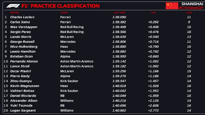 Volvía la Fórmula 1 a Shángai y tocaba ver cómo se desenvolvían los pilotos sobre el asfalto chino en los primeros y únicos libres del fin de semana. Después de cinco años sin formar parte de la F1, China dejó varias novedades con respecto a algunos pilotos. Los libres sorprendieron un tanto a muchos aficionados. El Aston Martin de Lance Stroll fue el más rápido de la parrilla, seguido del McLaren de Piastri. No hubo sensaciones muy positivas ni para Carlos Sainz ni para Fernando Alonso, que acabaron muy alejados de los primeros diez mejores tiempos. Habrá que esperar a lo que suceda en la clasificación para la carrera al sprint.