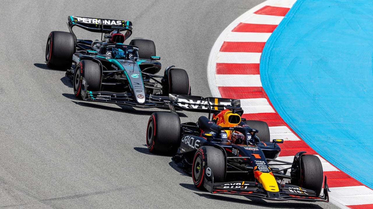 Max Verstappen y George Russel durante el Gran Premio de España de Fórmula 1 2024Cordon Press