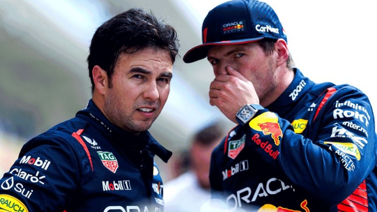 Max Verstappen, charlando con su compañero de Red Bull, Checo Pérez@redbullracing