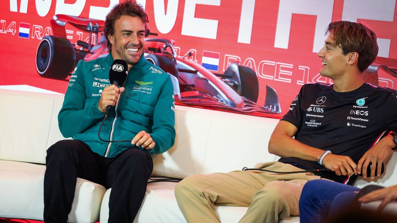 Fernando Alonso, junto a George Russell durante un gran premio en 2023CORDON PRESS