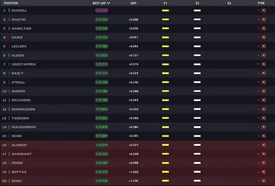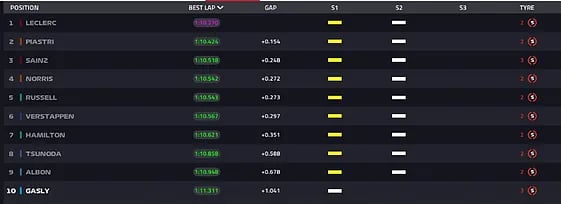 Primer intento de todos realizado en esta Q3: Leclerc, Piastri, Verstappen, Sainz, Russell...