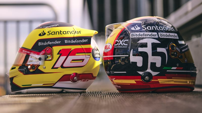 Los detalles amarillos estarán presentes en los cascos de Carlos Sainz y Charles Leclerc, además de lucir una franja del mismo color en sus coches. Además de que tanto el piloto español como el monegasco lucirán un mono completamente amarillo.