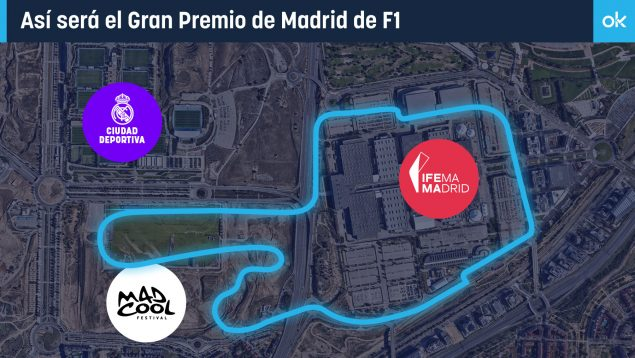 "Hemos estado trabajando en el proyecto de poder traer la Fórmula 1 a Madrid, lo hemos hecho a través de Ifema con la premisa, además, de que no hubiera inversión de dinero público. Hemos estado trabajando conjuntamente con la Fórmula 1, hemos cumplimentado todos los requisitos que solicitaban, pero la comunicación oficial le corresponde a la F1. Hemos trabajado con enorme ilusión, de manera muy profesional. Creemos que somos la mejor ciudad para poder albergar un gran premio de Fórmula 1, pero no nos corresponde a nosotros hacer el anuncio", reitera sobre un trazado que según OK Diario se vería así.