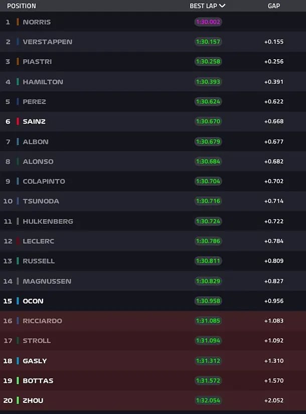Tras las probaturas del viernes, los equipos lo han montado todo esta mañana en los Libres y ahí, Lando Norris ha asustado, el británico ha hecho una demostración de fuerza antes de lo importante. Verstappen ha salvado los muebles, pero está a casi un segundo de su gran rival. Y los Red Bull siguen siendo la cuarta escudería en parrilla ahora mismo