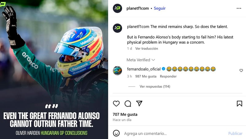 Fernando Alonso vuelve a ser protagonista dentro y fuera de la pista. Tras firmar su mejor resultado del año en Hungría, un medio cuestionó su estado físico por cumplir 44 años. La respuesta del asturiano ha sido tan breve como contundente… y se ha hecho viral.