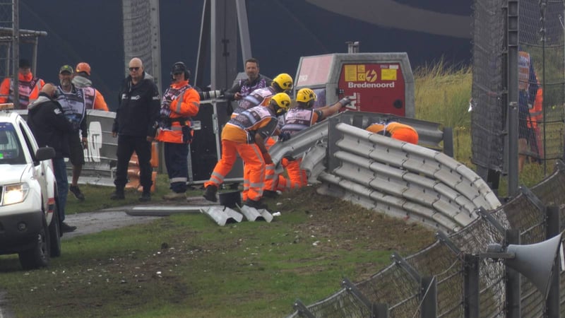 La lluvia que se había asomado al trazado hizo que Sargeant, al pisar la hierba, perdiera el agarre del monoplaza y se fuera directo contra el muro en un tramo en el que estaba empezando a acelerar el vehículo, aunque pudo salir por su propio pie y aseguró estar bien a la escudería, pese al golpe.