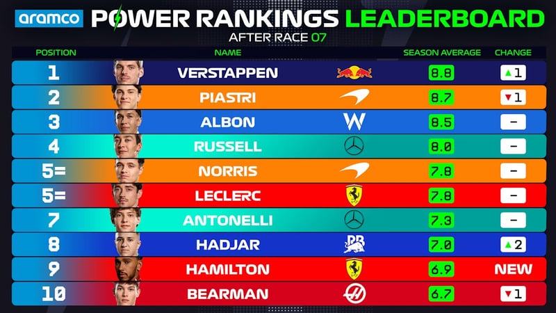 No sólo es que Max cada vez esté más cerca del liderato del título, con sólo 22 puntos de diferencia respecto a Piastri, es que se ha colocado líder de una clasificación alternativa, la del 'Power Ranking'. Unos jueces de Fórmula 1 elaboran después de cada carrera unas valoraciones sobre la actuación de cada piloto durante el fin de semana y dan unas puntuaciones, que se suman para un mundial particular.