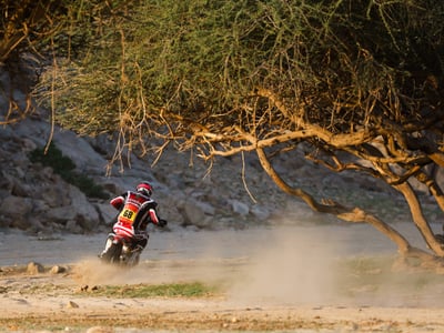 El australiano Toby Price y el portugués Joao Ferreira, también del equipo oficial de Toyota, completaron el 'top 5' y el repóker de los japoneses, en tanto que los Dacia del francés Sebastien Loeb y de Al-Attiyah cedieron 6:17 y 7:06, lo que sitúa al catarí como nuevo líder con siete segundos de ventaja sobre Quintero y 1:09 respecto al belga Gillaume de Mevius , que partía como primer clasificado.