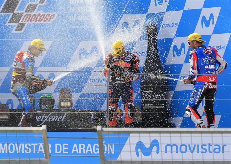 Alcañiz (Teruel), 24 sep (EFE).- El italiano Franco Morbidelli (Estrella Galicia 0'0 Kalex) sumó su octava victoria de la temporada y con ello aumentó hasta 21 puntos su ventaja en la clasificación provisional del mundial tras imponerse en el Gran Premio de Aragón que se disputó en el circuito Motorland de Alcañiz.