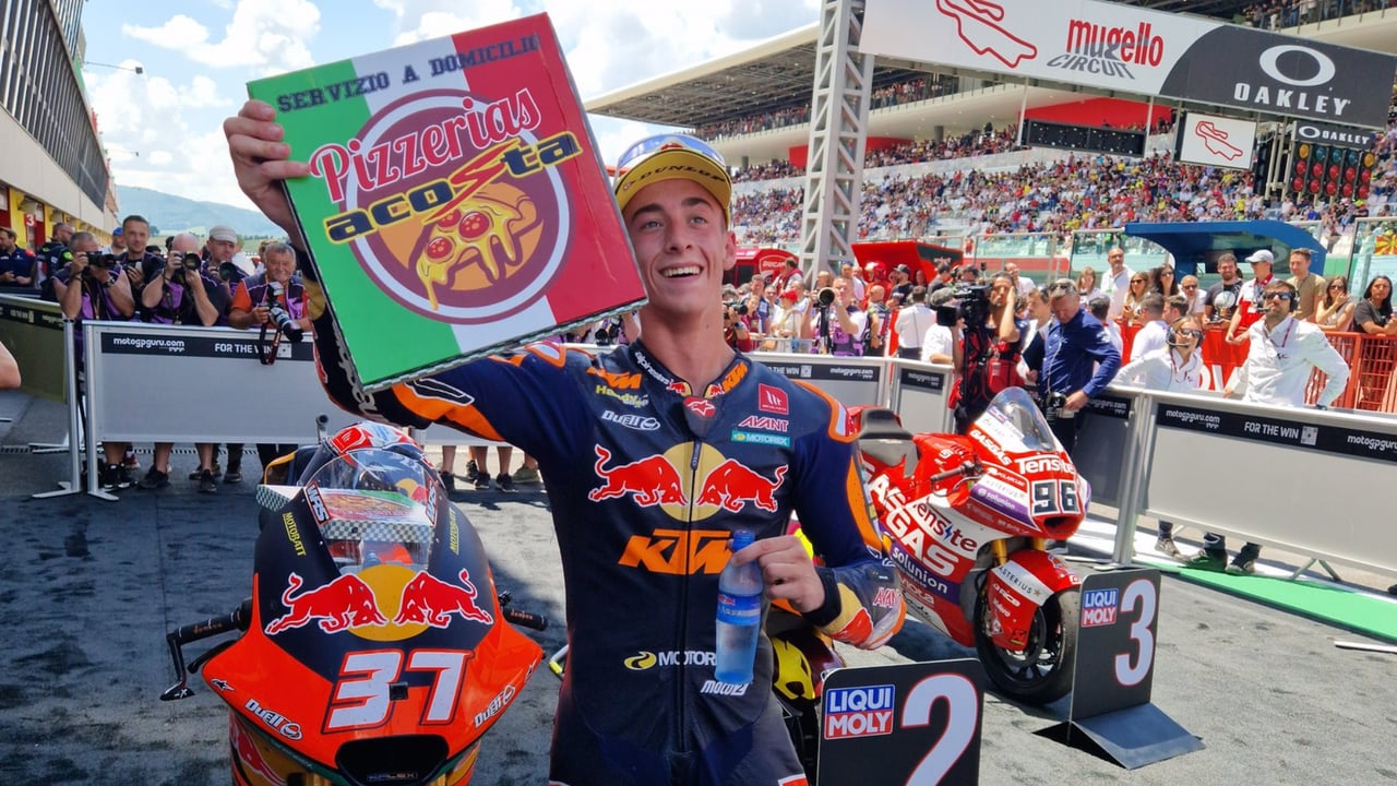 Pedro Acosta celebrando su victoria en el GP de ItaliaTwitter - @RedBull_KTM_Ajo