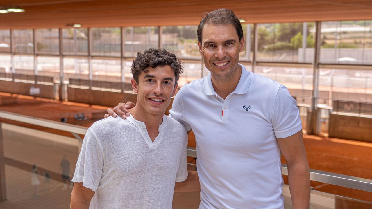 El piloto de Cervera Marc Márquez se encuentra en Mallorca, asistió la noche del domingo junto a su novia Gemma Pinto y otros amigos al concierto que dio Melendi en Calvià y, además, ha ido a saludar a su amigo Rafa Nadal. El tenista de Manacor tiene una academia que Marc Márquez ha ido a visitar, han charlado un rato y, después, Rafa ha compartido el momento en redes sociales, con una fotografía y un curioso mensaje. Muchos han leído la letra pequeña interpretando que puede ser el indicio definitivo que aclara el futuro de Marc Márquez.