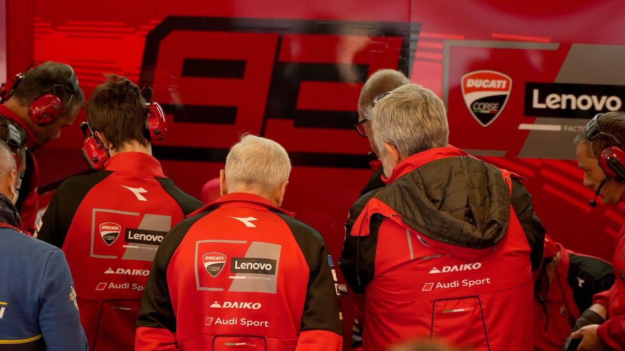 Los técnicos de Ducati, durante la primera prueba de Marc Márquez.Cordon Press