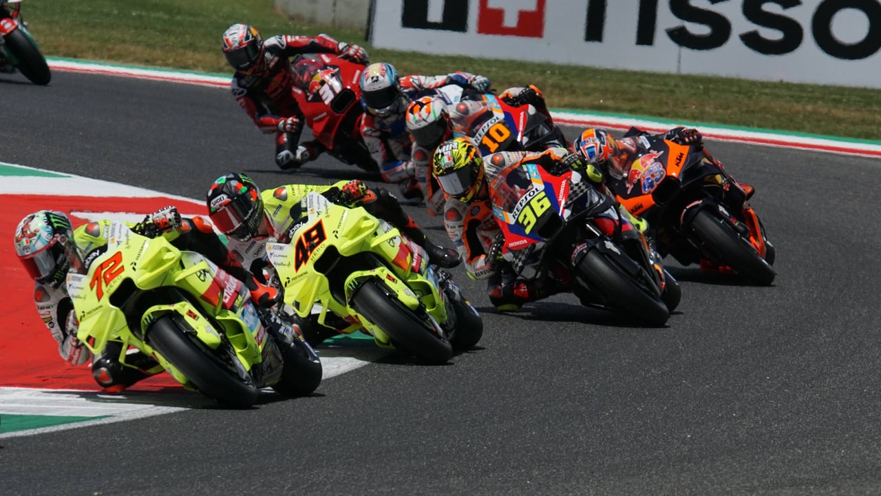 Marco Bezzecchi comandando un grupo de pilotos durante el GP de Italia de MotoGP 2024, en MugelloCordon Press