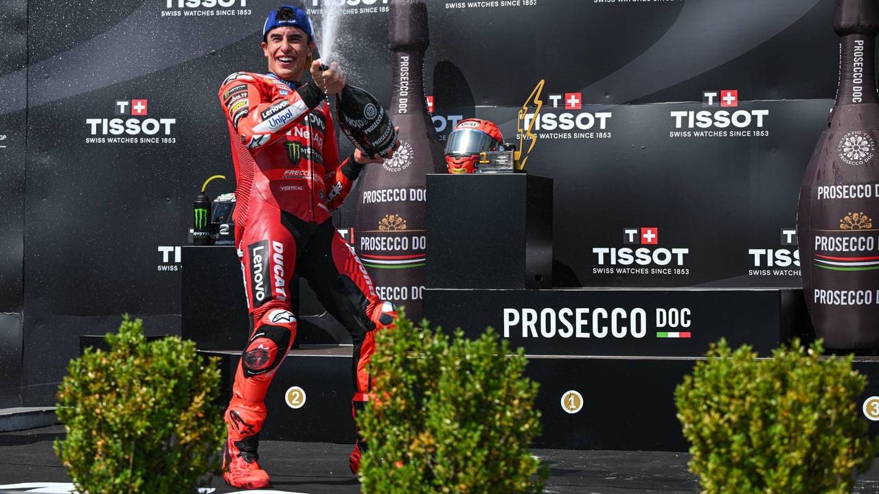 De las 24 carreras disputadas en lo que va de Mundial de MotoGP, Marc Márquez ha ganado 19 de ellas. El piloto del Ducati Lenovo es el grandísimo dominador del certamen. Cuando firmó hace poco más de un año por la escuadra oficial de Borgo Panigale la gran duda es si iba a ser capaz de adaptarse y cumplir con las altísimas expectativas generadas tras su buen primer año con la moto italiana en el Gresini. Si con una máquina antigua era capaz de acercarse a Bagnaia, Martín y compañía, con la 'pata negra' nadie debería poder pararle. Y efectivamente eso es lo que ha sucedido.