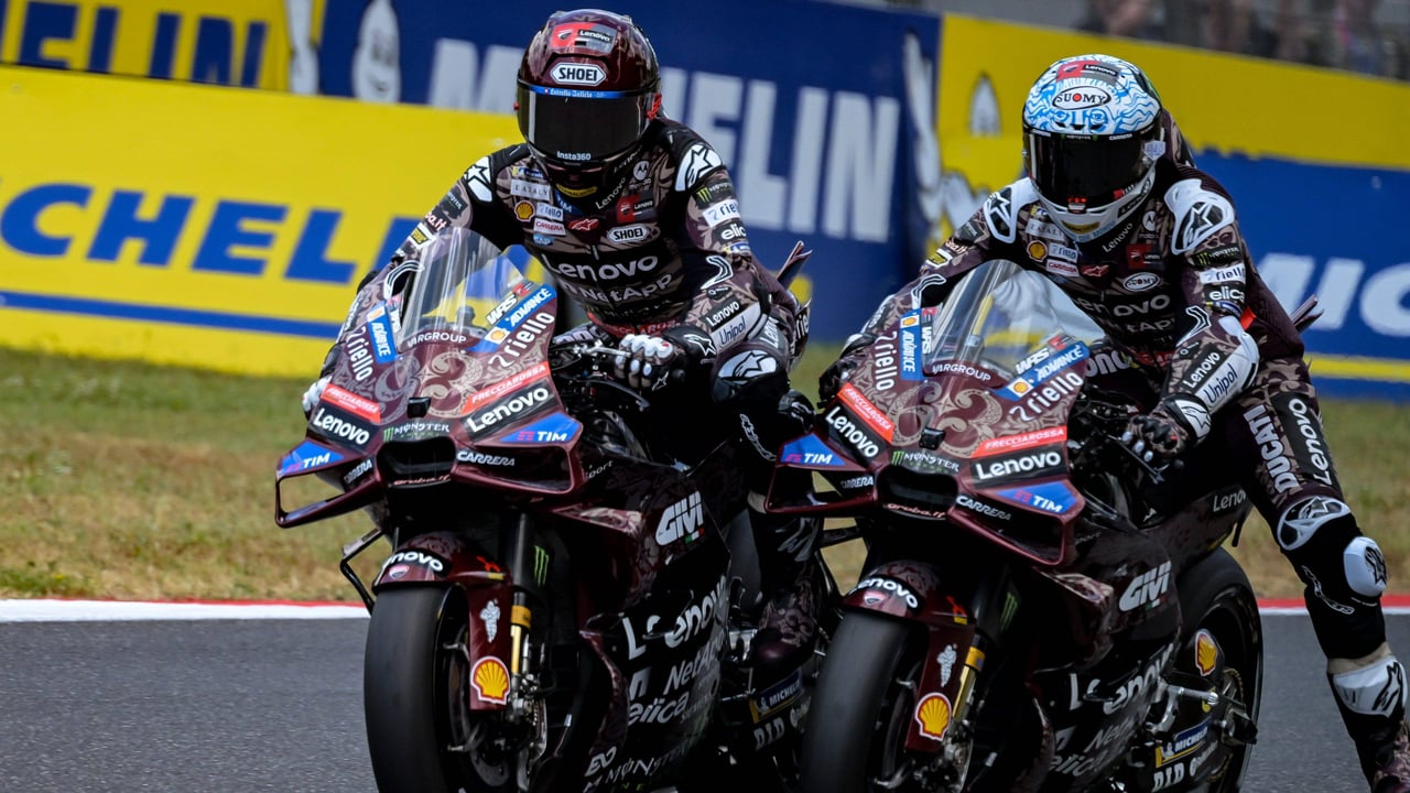 Marc Márquez y Pecco Bagnaia con sus Ducatis durante el Gran Premio de Italia de MotoGP en 2025 en el circuito de MugelloCordon Press