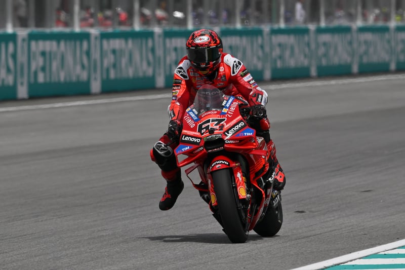 El Gran Premio de Malasia fue una auténtica montaña rusa de emociones para Ducati. Después de unos entrenamientos complicados para Pecco Bagnaia, su piloto de referencia ante la ausencia de Marc Márquez, parecía que su fin de semana iba a ser nuevamente muy complicado. Sin embargo, el sábado pudo dar la sorpresa y conseguir ocupar el escalón más alto del podio en la carrera al spring.