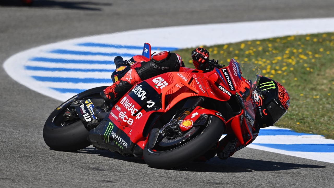 Bagnaia rompe el récord en Jerez con caídas de Viñales, Márquez y Pedrosa