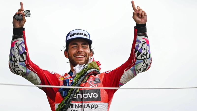 Es su primer triunfo de la temporada y el sexto de su carrera deportiva. 'La Bestia' no tuvo piedad, ni de su compañero Pecco Bagnaia ni de Jorge Martín en las últimas vueltas de la carrera británica. Como dijo el propio Pecco al final de la misma, el problema de Enea Bastianini en las pruebas anteriores es que fallaba el sábado, clasificaba mal y tenía que remontar. O que, 'pinchaba' en las primeras vueltas. Pero saliendo delante y situándose al rebufo de los que lideran el Mundial, era cuestión de tiempo que los pasara.