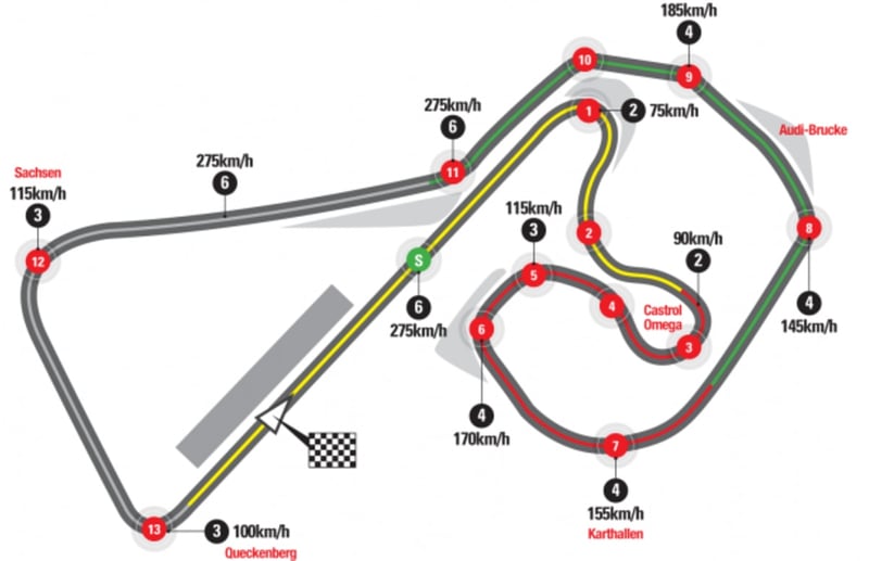 Circuito de Sachsenring: longitud, curvas y vuelta récord del trazado del GP de Alemania de MotoGP