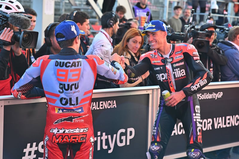 Por último, Aleix le ha mandado un mensaje de optimismo a Jorge Martín para este nuevo curso: "Yo no tengo el talento, ni de lejos, de los pilotos que han luchado por el título Mundial. Y si yo he conseguido ganar carreras con la Aprilia, he hecho poles, tengo récords en muchas pistas... ¿Por qué Jorge Martín no puede luchar por un título? Luchar, yo no he dicho que vaya a ser campeón el año que viene, pero creo que Aprilia está haciendo un buen trabajo".