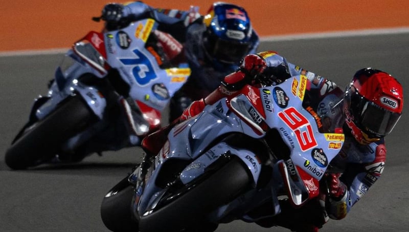 "Uy, no corre nada la moto de Márquez. No corre nada la moto de Marc. Mira cuánto pierde", señalaba Jorge Lorenzo sorprendido en la retransmisión del Gran Premio de Qatar de MotoGP. Se refería a la 'pelea' de Marc Márquez con Jorge Martín, que en las largas rectas del circuito de Lusail sacaba una décima al piloto de Cervera y dejaba en nada lo que éste había podido recortarle previamente en las curvas.