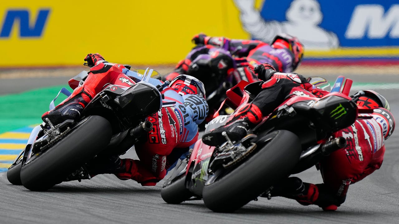 Jorge Martín, Pecco Bagnaia y Marc Márquez disputando el Gran Premio de Francia de MotoGP en Le MansCordon Press