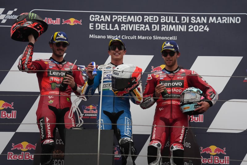 Este fin de semana se disputa el GP de Emilia Romagna. Visitarán de nuevo el circuito de Misano, en el que el catalán se proclamó campeón hace unas semanas, y si repite hazaña se acercará cada vez más al título. Quedan muchos puntos por disputar y una lucha a tres muy interesante por el campeonato. Lidera Jorge Martín, le sigue Pecco y detrás está Márquez, que antes de pensar en alcanzar a su compatriota debe superar a su próximo compañero de equipo.