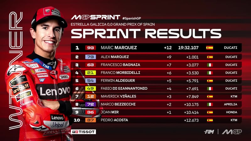 F1 GP de España 2025, resultados de la carrera Sprint en el Gran Premio de MotoGP con Marc Márquez y Álex Márquez