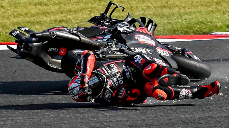 El piloto de Aprilia chocó con su compañero de equipo, Marco Bezzecchi, durante la carrera sprint del último GP de Japón y abandonó el circuito de Motegi con un fractura con desplazamiento en la clavícula derecha.