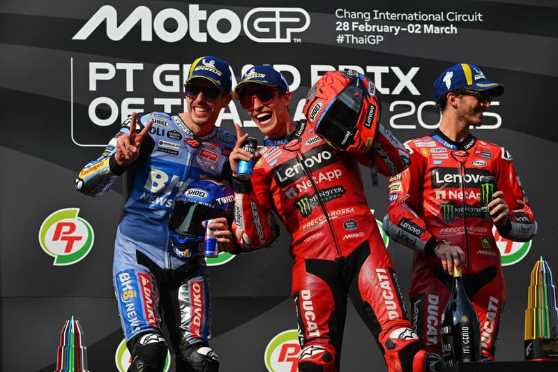 Todos apuntan a un interesante duelo contra Pecco Bagnaia, que no sólo será una pelea por el título si no también un enfrentamiento por convertirse en el líder del equipo de Borgo Panigale. Sin embargo, el máximo enemigo del ilerdense es otro. Se trata de su hermano Alex, quién dio la sorpresa en los test de pretemporada y ya ha avisado de su nivel en el GP de Tailandia. Por ello, ahora lanza un serio aviso a Marc sobre sus ganas de pelear por el campeonato.