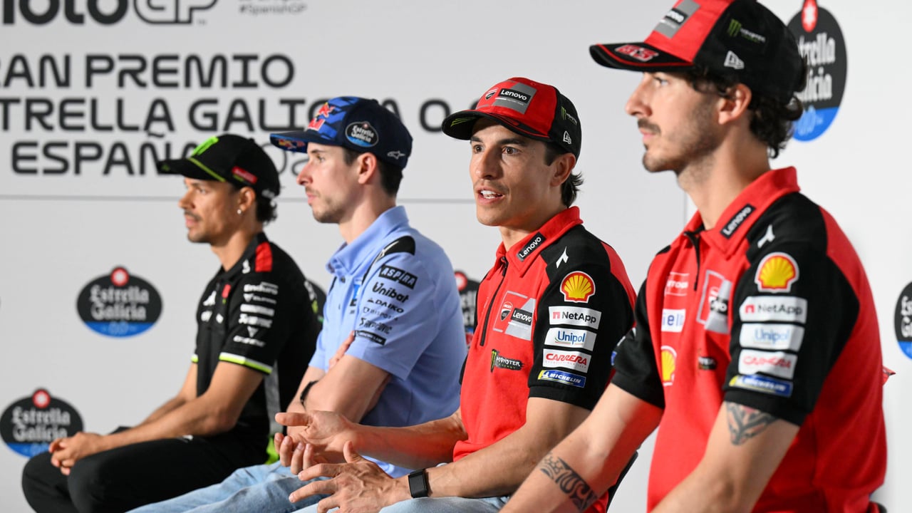Fue en un momento divertido en el que Álex le recriminaba a Marc que le hubiese chocado la mano tan fuerte al felicitarle: "Mira aquí, casi me revientas la mano, ¡serás tonto!” (diciéndoselo a Marc). Luego se giró y le comentó a Pecco lo siguiente: “¿Pués no que me quería golpear la mano?”. Posteriormente, Marc, en el mismo tono, se lo explicó: “Es que se acerca Brno y quería…”. Y fue ahí cuando el italiano aprovechó para lanzarle un mensaje a ambos: “En Brno todas las curvas son a derechas”. Entre carcajada y carcajada, pero lo soltó.