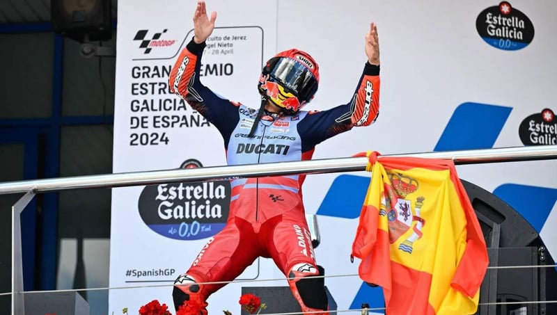 "Siempre tengo una de las GP24 a cuatro o cinco segundos", diría nada más terminar la prueba. En este caso eran la de Bastianini y la de Jorge Martín. Pecco Bagnaia, que deterioró mucho sus neumáticos tratando de escaparse en el primer tramo de la carrera, quedó a un solo segundo. Y a Márquez le quedó la sensación de que, si no se hubiera caído el sábado y sido tan conservador el domingo, podría haber adelantado al piloto italiano y haber estado en el podio.