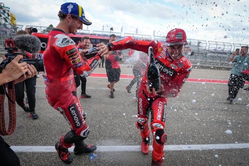 La llegada del 'campeonísimo' Marc Márquez a Ducati ha rehabilitado un equipo que ansiaba caras nuevas, pero sobre todo, nuevos triunfos. El de Cervera tomó la dura decisión de dejar el equipo que le hizo llegar a lo más alto en seis ocasiones con Honda, para después pasar uno de sus peores momentos profesionales debido a varios infortunios que lo tuvieron alejado de los circuitos. Y este año lo ha vuelto a hacer, conquistando de nuevo el título mundial al que abraza con cariño.y que ha hecho a los italianos soñar a lo grande.