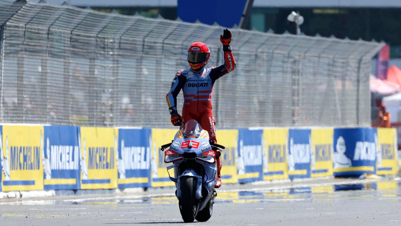 Ya está aquí el coco, o eso parece en el Mundial de MotoGP, que ha vivido este domingo una de las mejores carreras del año, aunque aún no se ha visto una mala este año. Y mucho de eso se debe a Marc Márquez, quien hasta en un fin de semana donde está sumamente incómodo, como este de Le Mans, donde incluso se quedó fuera de la Q2, es capaz de hacer barbaridades, empezando por lo de ayer en la sprint, donde acabó segundo tras una salida antológica, y hoy domingo se ha reafirmado, saliendo algo peor, pero repitiendo posición por puro ritmo. Incluso lo ha reafirmado con un adelantamiento brutal a Pecco Bagnaia en la última vuelta. Solo le ha faltado Jorge Martín, pero es que el madrileño ha estado en otra galaxia todo el fin de semana.