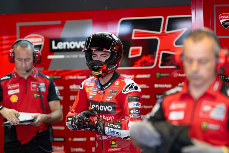 Pecco Bagnaia lleva muchas citas buscando el tacto de su Ducati, y parece que al fin, en un trazado en el que ya sabe lo que es ganar pues lo ha hecho los tres últimos años, lo ha encontrado. Apenas 49 milésimas le han separado de su compañero de equipo, en un esfuerzo sobrehumano por acercarse a él. No obstante, aunque han demostrado en cada sesión que tienen muy buen ritmo, no se pueden relajar, pues Álex Márquez también va como un tiro y ha sido tercero, a menos de una décima de su hermano.