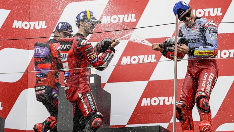 "Ha sido una carrera super aburrida", reconocía el piloto de Gresini Racing, que llegó muy pronto, en apenas unas curvas, a esas primeras posiciones, pero luego las dos GP24 se le escaparon. "No hubo adelantamientos, solo manteniendo el ritmo. Pero estoy contento, con el neumático medio trasero no me sentía tan cómodo como con el blando ayer en la sprint, pero era muy arriesgado hoy salir con el blando. Ha sido un fin de semana difícil, pero estamos de nuevo en el podio", afirmaba un Marc Márquez que no sólo estaba contento por la remontada, sino porque lo había hecho con problemas en su moto.