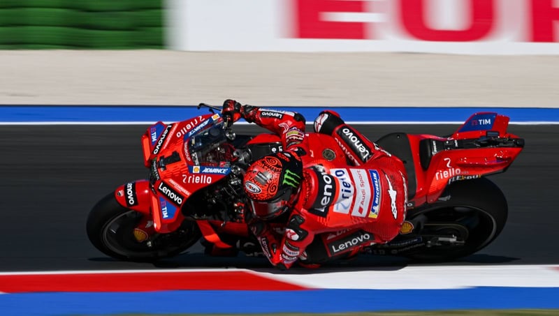 En Misano estuvo a la par de Jorge Martín en la primera sesión, que Bagnaia se tomó con más tranquilidad y en la que se llevó un susto. Y, en la práctica clasificatoria para la Q2, sólo se vio superado por un Bagnaia que quiere recuperar en casa el terreno que perdió en tierras aragonesas.
