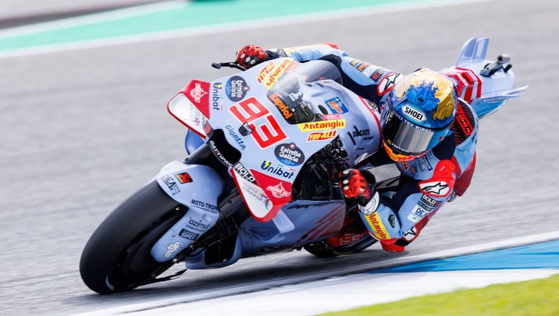 El de Gresini Racing elogió a un Bagnaia que no se achantó pese a lo mucho que se jugaba y a que corría en una superficie donde había mucho riesgo de caída. "Hoy Pecco ha sorprendido, sobre todo, porque en el 'warm up' no acababa de ir y ha hecho una carrera muy inteligente. Ha liderado, porque en agua es súper importante liderar para la temperatura del neumático delantero. Y lo ha hecho muy bien. Se ha defendido bien cuando he atacado yo. Quería ganar sí o sí y lo ha hecho bien", reconoce Márquez, quien, no obstante ve "a un Martín muy centrado" y asume que es complicado que se le escape este Mundial.