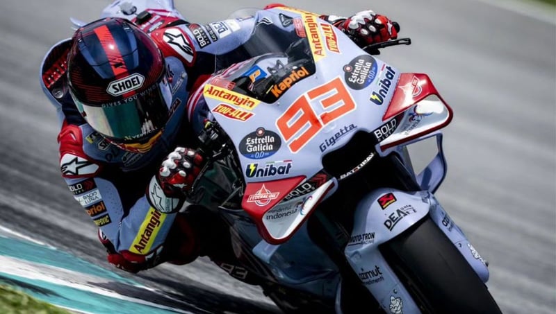 Todo viene por una pregunta del italiano sobre cómo se había sentido Márquez con la moto en Sepang. "¿Es complicada?", preguntaba Pecco Bagnaia, a lo que, en principio, el piloto de Cervera se muestra precavido y señala que sólo es "diferente" a la Honda que ha pilotado en los últimos años.
