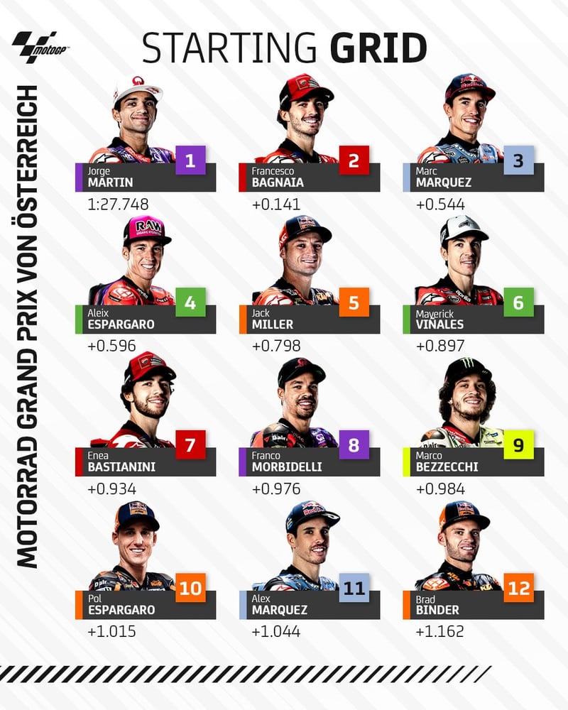 Así saldrán los pilotos en el GP de Austria de MotoGP 2024