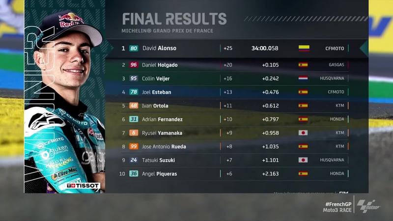 Clasificación de la carrera del Gran Premio de MotoGP de Francia 2024