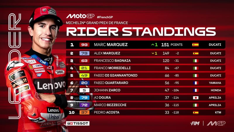 MotoGP 2025 GP de Francia | Resultados de la carrera sprint del Gran Premio de Francia de motociclismo con Marc Márquez y Álex Márquez
