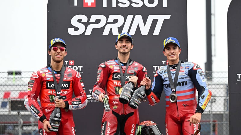 Nada más ganar, una victoria arreglada por la caída de Pedro Acosta a falta de tres vueltas, ha quedado la duda de que si Marc Márquez hubiera pasado a Enea Bastianini, le habría metido la moto, pero aún así el turinés no lo veía como un rival. "En mi opinión, yo habría terminado en cualquier caso primero", Sobre todo porque al inicio de la última vuelta tenía más de un segundo de renta sobre el dúo, pero ha llegado a meta con apenas décimas, eso sumado a que se ha quedado sin gasolina y estaba empezando a llover, podía haber sido un problema, pero no lo tiene tan claro.