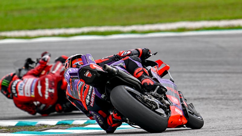 El Mundial de MotoGP llegaba a la carrera larga de Sepang con la opción de conocer al campeón, pues tras la caída de Pecco Bagnaia en la sprint, Jorge Martín tenía 29 puntos de ventaja sobre el del Lenovo y le valía con sacarle 9, es decir, ganar y esperar que el turinés fuera tercero, pero no ha sido así, porque el piloto del equipo oficial se ha llevado una gran victoria, trabajada y emocionante, que retrasa el alirón al menos hasta el último Gran Premio del año, que tras la cancelación de Valencia por culpa de la DANA, finalmente será en Montmeló, en la misma fecha que estaba previsto.
