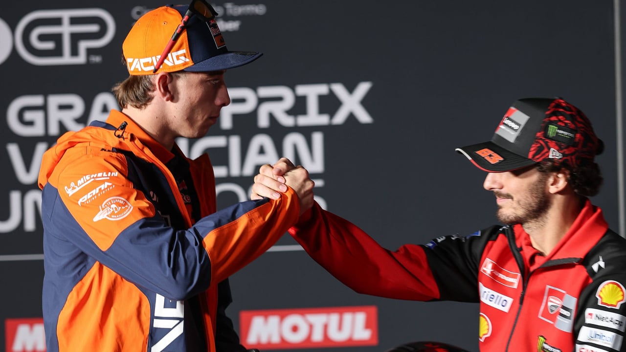 De las carencias actuales de su moto, Pedro Acosta reconoció que "falta que evolucione la moto, porque no ha evolucionado en todo el año; es verdad que un carenado ha podido ayudar un poco, un basculante ha podido ayudar un poco, pero eso no es una evolución".