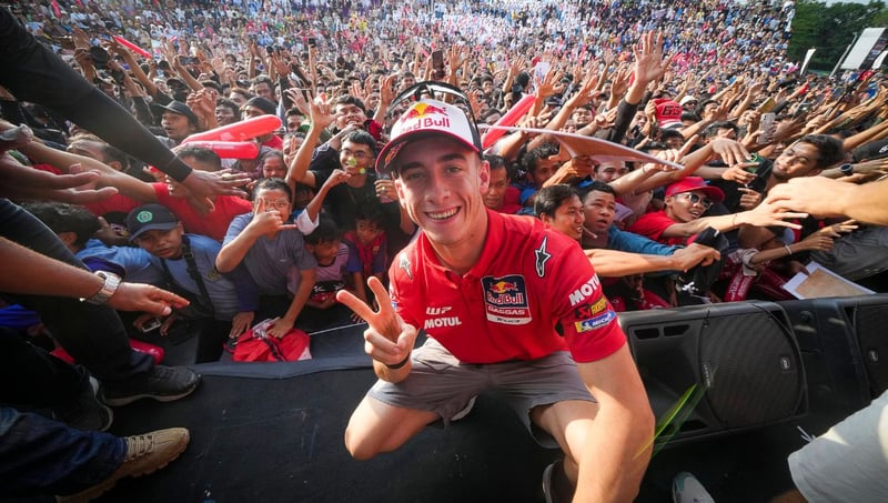 Pedro Acosta reconoce cómo ha cambiado todo desde que el pasado año dio el salto a MotoGP. Tanto que echa de menos su vida privada y poder ir por la calle sin que le reconozcan. “De Moto3 a Moto2 no se nota el cambio a nivel mediático. Cuando pega el cambio es cuando tú vas a MotoGP. Ahí, desde enero no paré, fue a tope. Porque si no tienes eventos con uno, es con otro. Mediáticamente quizás no se nota, yo que no tengo Instagram, quizás, no lo puedo notar. Se habla más de ti y todo, pero en MotoGP desde las 9:00 de la mañana a las 20:00 de la tarde es un no parar. Son muchas cosas: reuniones, entrevistas, televisiones, etc. A lo tonto solamente te sientas para desayunar, comer y cenar. (...) Por redes, fuego; por revistas, fuego; por tele, fuego... Sales a comer y no comes porque te tienes que hacer fotos. Sales a la playa y no desconectas porque te sacas fotos. Nosotros es como si tuviéramos una cámara de 24 horas grabándonos. Yo me tengo que levantar mientras estoy comiendo para hacerme una foto, si no, soy el malo. El problema es que tenemos que ser la persona pública 24 horas al día. Si pudiera pedir un deseo, sería poder ir por la calle y que nadie me conozca aunque fuese una vez al mes. Es lo que más echo de menos”, indica el murciano.