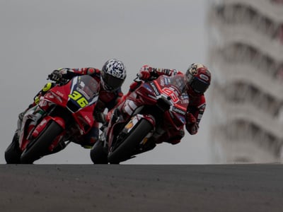 Con la segunda clasificación –la que decide la pole– ya en marcha, no perdieron ni un segundo los interesados en aprovechar al máximo el tiempo y, si era posible, seguir el rebufo de alguno de los pilotos punteros. Entre estos el primero en destacar fue 'Pecco' Bagnaia con 2:00.815, que era récord absoluto del circuito, con su compatriota Fabio di Giannantonio segundo a 22 milésimas de segundo y con Marc Márquez tercero, pero a más de seis décimas de segundo.