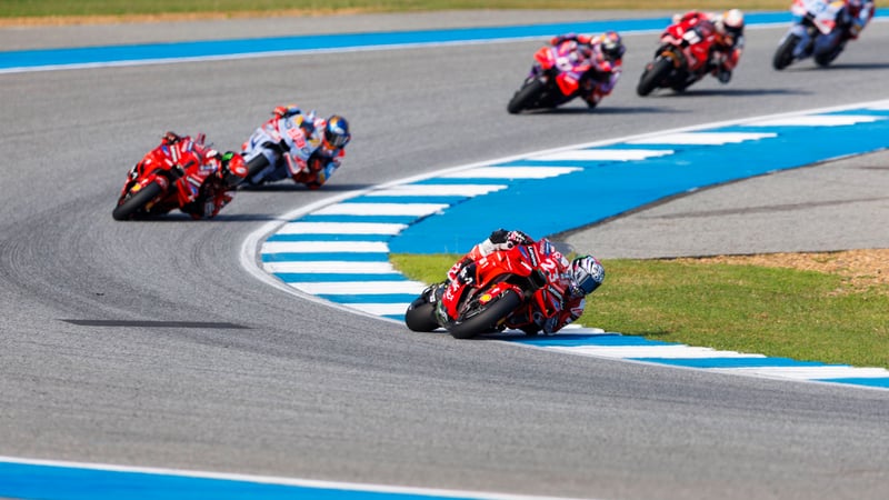 El gran premio de Tailandia de motoGP ha estado marcado por la lluvia, que ha traído emoción e igualdad en una carrera que de por sí la iba a tener, más aún después de lo visto en la sprint. El agua que ha caído en Burinam durante toda la jornada ha obligado a la organización ha declarar en mojado la prueba, lo que daba pie a que los pilotos más finos salieran a la palestra, y así ha sido. Pese a que Marc Márquez se ha ido al suelo cuando parecía que tenía el ritmo para adelantar a Pecco Bagnaia, tanto el turinés como Jorge Martín han dado una exhibición de surfear en la pista asiática. Pero el tercer puesto ha sido quizá el más luchado, y el triunfador ha sido un excelso Pedro Acosta.