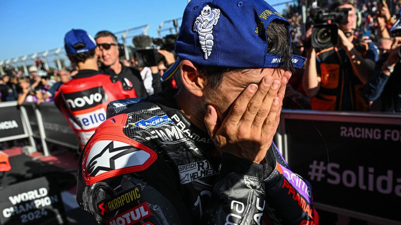 En total, dio 77 vueltas con con una moto negra que, por ahora lucirá el 89 en los laterales, si bien dicho dorsal todavía está en el aire. Cuestionado por ello, Jorge Martín fue claro: "Tengo un mes para decidirlo, bueno, la decisión está más que tomada, pero tenemos unas semanas antes de hacerlo público. Pero lo importante es haber puesto la segunda estrella en el número (segundo mundial ganado), no el número".