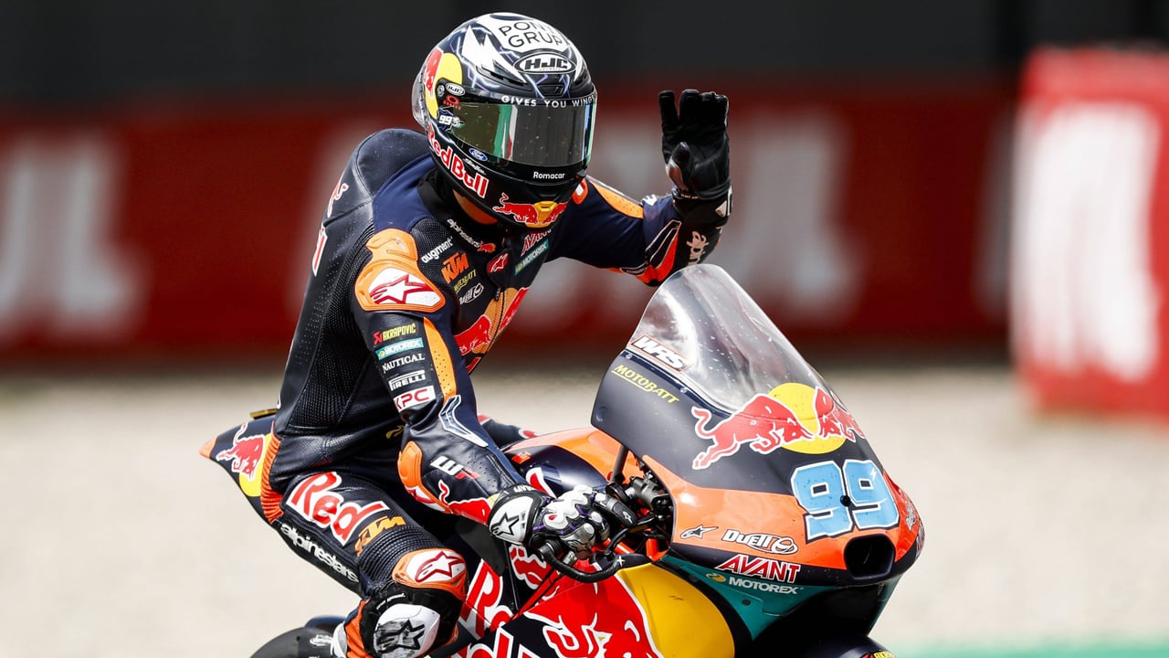 Mientras tanto, el español José Antonio Rueda (KTM) se ha adjudicado su sexta victoria de la temporada, que le permite ser más líder del campeonato, al vencer el Gran Premio de los Países Bajos de Moto3, disputado en el circuito TT de Assen y que tuvo que ser detenido con bandera roja en la última vuelta.La caída protagonizada en la variante de la entrada a la recta de meta para iniciar la última vuelta, en la que se vieron involucrados el español Adrián Fernández (Honda), el japonés Taiyo Furusato (Honda) y el italiano Luca Lunetta (Honda), el más perjudicado, obligó a Dirección de Carrera a mostrar bandera roja para que el transalpino pudiese ser atendido.Así, la victoria recayó en José Antonio Rueda, por delante de su compatriota David Muñoz (KTM) y del hispano-argentino Valentín Perrone (KTM), los tres primeros en la última vuelta completa de todos los pilotos, la penúltima.En la salida no fallaron ni José Antonio Rueda (KTM) ni Álvaro Carpe (KTM), que fue el primero en enfilar la curva de final de recta, mientras que el italiano Guido Pini (KTM) se quedaba literalmente 'clavado' en la salida y aunque intentó arrancar la moto para salir no pudo hacerlo y se tuvo que retirar con la cadena de transmisión secundaria rota.